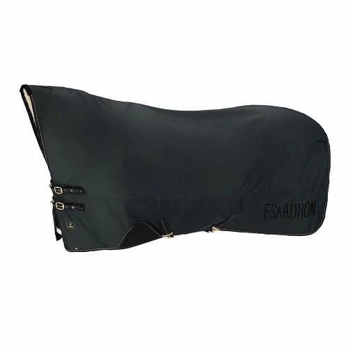 Wytrzymała tkanina zewnętrzna 1680 Deiner krój szyi jako dodatkowa ochrona przed wilgocią i neoprenowa ochrona przed otarciem grzywy WP/5.000 mm/H2O wodoodporność 4000g/m2/24h oddychalność przytulna podszewka ze sztucznego futra zapobiegająca przetarciom lepsze dopasowanie dzięki elastycznym neoprenowym ruchomym strefom na przednich nogach duży ochraniacz na ogon indywidualnie regulowane zapięcia z przodu i dodatkowe przedłużenie piersi FauxFur bez wypełnienia.