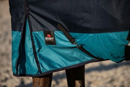 Derka padokowa START 2-tone, 0g 600d podszyta Padokowa derka bez wypełnienia. Wykonana z wodoodpornego i oddychającego materiału RipStop o gramaturze 600 DEN od wewnątrz podszyta polarem. Posiada rozcięcia na łopatkach zapewniające swobodę ruchów, z przodu podwójną regulację z możliwością szybkiego zapięcia. Pasy krzyżowe zapobiegające przesuwaniu się derki, odpinane pasy na nogi i klapę na ogon.