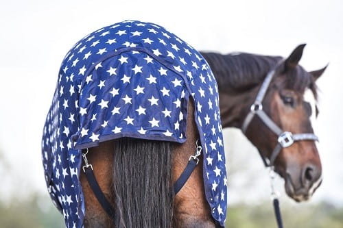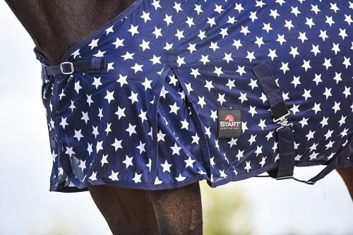 Derka siatkowa START Stars Derka siatkowa z modnym wzorem w gwiazdki. Drobne oczka siatki ochronią konia nawet przed meszkami. Idealna na padok oraz do stajni.