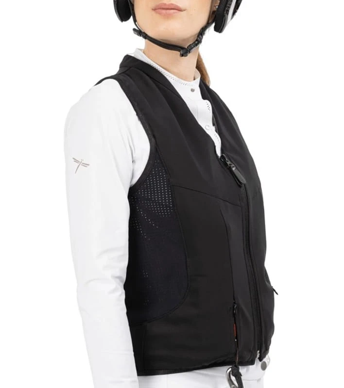 FREEJUMP AIRBAG to kamizelka ochronna specjalnie zaprojektowana do sportów jeździeckich, która chroni newralgiczne miejsca jeźdźca w razie upadku. Można ją nosić na cienkiej warstwie odzieży (koszulka, bluza lub lekki sweter) lub na kurtce.