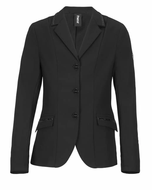 Zapięcie z przodu na ukryty zamek błyskawiczny i błyszczące guziki Pikeur
