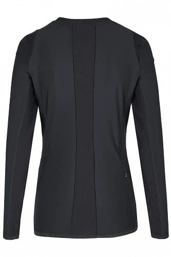 longsleeve z okrągłym dekoltem tight-fit koszulka techniczna z elastycznymi wstawkami DynAirMesh na ramionach, rękawach, talii i plecach dla precyzyjnej cyrkulacji powietrza wygodna w noszeniu funkcjonalna tylna kieszeń z krytym zamkiem trójwymiarowy nadruk ESKADRON na piersi ton w ton